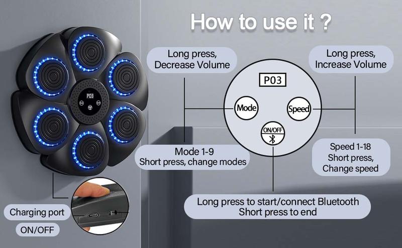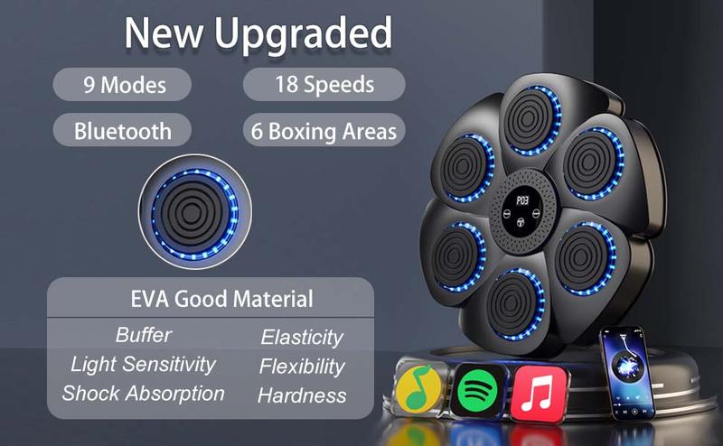 【Bluetooth Music Boxing Machine】Upgraded Music Boxing Machine is equipped with flexible LED light band display around each boxing target circle, and LED display will show the number of hits you make. You can also connect Bluetooth in playing your own favorite music boxing training with surround speakers and cool lights.