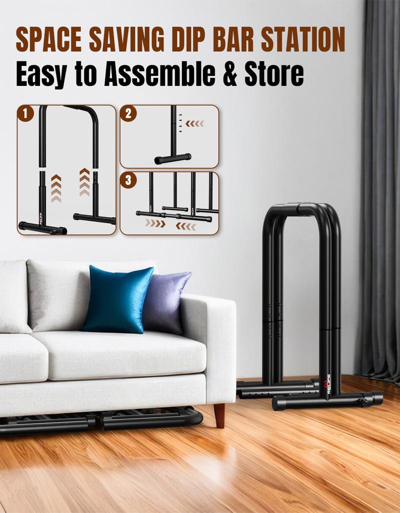 Build strength and sculpt your muscles confidently with this versatile dip station.